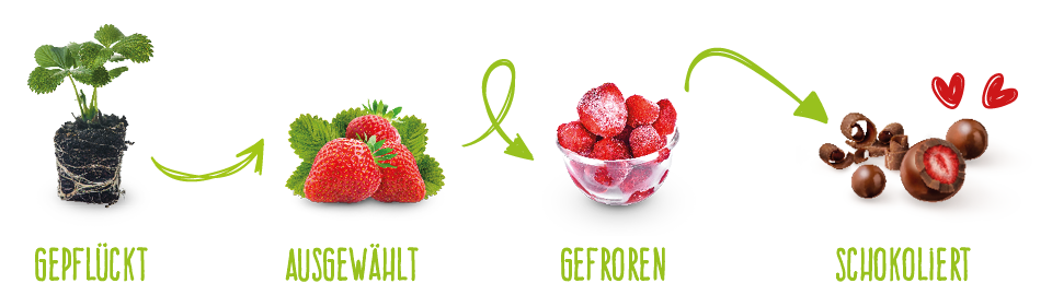 Alle Früchte werden für Feel Fruity von Hand geerntet. Durch eine sorgfältige Sortierung schaffen es nur die besten Früchte in die Feel Fruity Produkte. Das schonende Verfahren der Gefriertrocknung erhält nahezu alle Aromen und Vitamine in den Früchten. Mit feinster Schokolade umhüllt, entsteht aus den Früchten das einzigartige Feel Fruity Geschmackserlebnis.